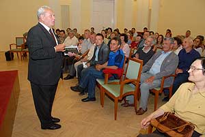 A Magyarok Háza nagy színházterme zsúfolásig megtelt - ezekkel a szavakkal kezdődött az a meghívó, melyben a szentesieket a Megyeházára invitálták Kisgyörgy Zoltán Háromszéki vártúrák kalauza című könyvének bemutatójára. Ez a mondat május 12-én is beteljesedett, kevés hely maradt üresen a szerző előadásán. A meghívó további soraiból kiderült: a geológus, író és újságíró előadását sokan azért választották a Háromszék napilapban olvashatók tanulsága szerint, mert ahhoz már korábban is szerencséjük volt, és nem akartak erről sem lemaradni. Mások azért mentek el, hogy tovább bővüljenek ismereteik a Háromszékről. Zoli bácsi Szentesen is tanúbizonyságot tett helytörténeti tudásáról, magával ragadó előadásmódjáról a agyszámú érdeklődő előtt, akik Kisgyörgy Zoltán humoros, ám mégis komoly történeteinek hallatán, illetve a szerző káprázatos előadásmódja miatt folyamatosan figyeltek, s sokszor dőltek a nevetéstől. Zoli bátyám — mint ahogyan az esten is elhangzott — ki sem fogyott a történetekből, melyek Háromszék egy-egy településéhez, illetve az egész tájegységhez kapcsolódtak, az érdeklődés felkeltése mellett kitörölhetetlen szép emléket hagyva ezzel minden megjelentben.