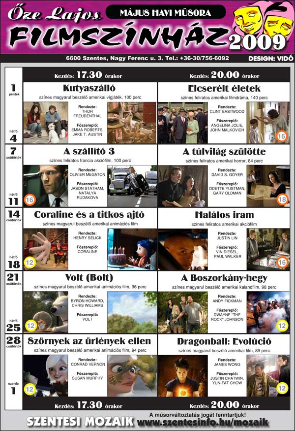 Őze Lajos Filmszínház 6600 Szentes, Nagy Ferenc u. 3. Tel.: 63/312-140