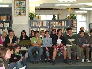 Radnóti Miklós születésének századik évfordulóján rendhagyó irodalomórával (2009. május 5.) tisztelgett a Gyermekkönyvtár a költő emléke előtt. Poszler György tanár úr vezette irodalom órán, megismerhettük Radnótit, mint tanulót, költőt, szerkesztőt, tanárt, szervezőt, barátot, szerelmest és utazót, fegyelmezett gondolkodót, gyakran játékos, olykor indulatos embert. Megtudhattuk, milyennek látta Radnóti a kortársait, és azt is, milyennek látták a többiek őt. Az előadást színesítette a Pontos vers az alkonyatról, című költemény, melyet Tóth János Gergely (HMG) előadásában hallgathattuk meg, majd rövid verselemzés következett. Tanár úr beszélt a munkaszolgálat megpróbáltatásairól, reményről mely a szabadságot hozhatta volna. A költő a legnehezebb időszakban is költő maradt, (Bori notesz) ezért ő soha nem a halál jelképe lett, hanem az életé, a szerelemé, meg a hité.