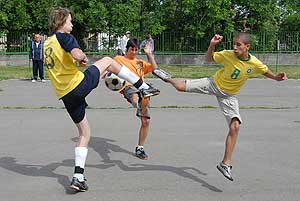 Az iskolák közötti kispályás focibajnoksággal párhuzamosan - mely a Gyermeknapi Kupáért zajlott - a kézműves utcában ajándéktárgyak készültek az apró kezek által. Volt, aki anyagozott, origamizott, az ugráló várban töltötte az időt.