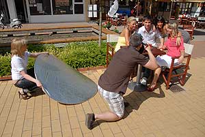 Ha valaki figyelmesen jár az országban, akkor a milliónyi óriásplakát között megláthatja az új Szentest népszerűsítő. Ebből a célból tartottak még május 18-án reklámfotózást városunkban.