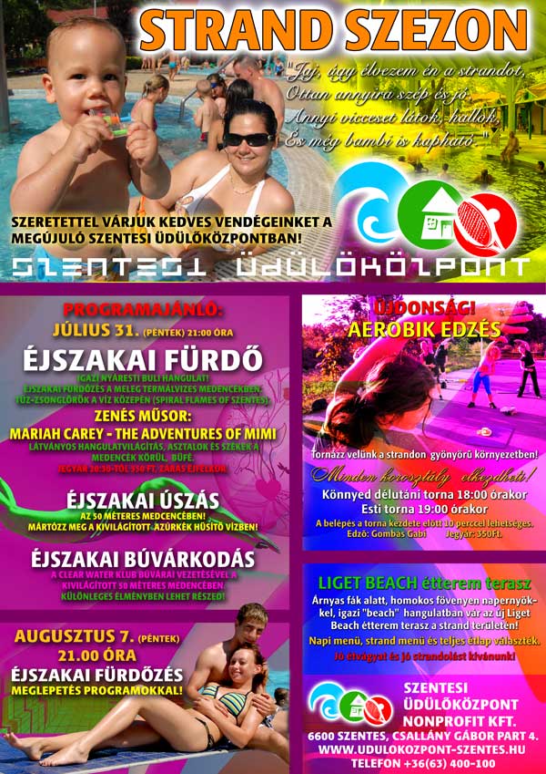 Tíz héten keresztül rendeznek nyári esti fürdőzést a Szentesi Üdülőközpontban (a strandon). Ezeken az estéken bemelegítésként tűzzsonglőrök szórakoztatják a fürdőzőket, majd pedig kezdődik egy koncertfilm.