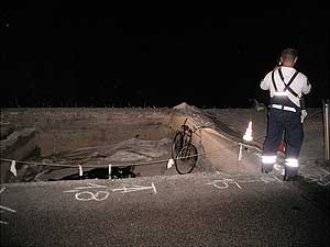 Munkagödörbe esett egy kerékpáros a