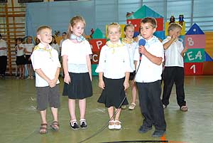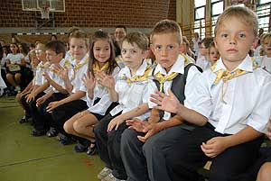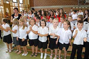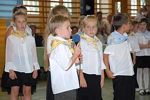 A városi tanévnyitón Szirbik Imre polgármester szólt a gyerekekhez először, figyelmeztetve őket arra, hogy mindig számíthatnak majd a nagyobbak segítségére és útmutatására. A polgármester elmondta, mindenki azt szeretné, ha az iskolaélet végén minden diák ügyes, értékeiben bízó felnőtté válna. Az ünnepség alkalmat adott arra is, hogy megköszönjék a Koszta József Általános Iskola eddigi vezetőjének, Almási Jánosnénak a munkáját, aki az idei tanévtől ismét visszatér a katedrához. Őt állva tapssal köszöntötte a több száz gyermek, szülő és kolléga.. Igazgatói feladatait Szemerédi András veszi át az oktatási intézményben, aki szólt arról, hogy jelenleg közel 600 diák tanul a Kosztában, közel 70 elsős most indult el a tanulmányok útján. Az igazgató arra is felhívta a figyelmet, hogy a nyáron felújításokat végeztek az intézményben, így a tanulás mellett a tanulók azt is feladatul kapták, hogy vigyázzanak a megújult épületre.