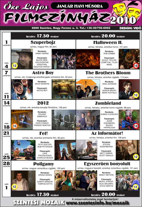 Őze Lajos Filmszínház 6600 Szentes, Nagy Ferenc u. 3. Tel.: 63/312-140