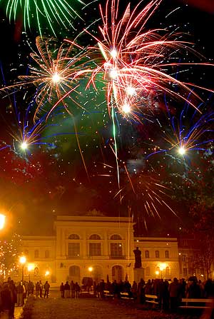 Az év utolsó napján 2009. december 31-én éjszaka több ezren voltak kíváncsiak a Kossuth téri újévi tűzijátékra. Az idő is kegyes volt a gyülekezőkre, de amint eldurrantak a pezsgők nem csak „csillagok” hulltak alá, hanem az eső is eleredt. A tömeg kitartott a szakadó esőben is és hangos ujjongással fejezték ki tetszésüket a több mint 10 perces tűzijáték végén. Szentes, 2010. 01. 05.