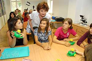 A korszerű felszerelés sokoldalúan, így régészeti kutatásban képzőművészeti elemzésekre is alkalmas. Elsőként azonban a jövő reménybeli kémikusai, biológusai, a Koszta-iskola néhány diákja próbálhatta ki a bemutató órákon, milyen lehetőségek rejlenek az oktatóterem modern felszerelésében. Szentes, 2010. 10. 20.