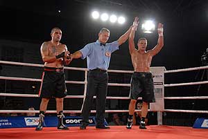 Lehet, hogy pár év múlva különlegesen szerencsésnek érezheti magát az a bokszrajongó, aki élőben láthatta Szentesen a brit Mark Heffron-t (3 győzelem – 0 vereség), hiszen a 18 éves ökölvívót óriási tehetségnek tartják a szigetországban. Az amatőrként junior Eb-ezüstérmes fiatalember nyáron Los Angelesben, a híres Wild Card Gym-ben készült fel a profi pályafutására, ahol személyesen Freddie Roach foglalkozott vele. Magyarországa Petrányi Zoltán menedzser kapcsolatai révén érkezett, hogy megvívja harmadik fejvédő nélküli mérkőzését Molnár Attila (18-18-6) ellen. Heffron igazolta jó hírét, hiszen gyors és kemény ütésekkel már az első menetben megoldhatatlan feladat elé állította magyar riválisát (TKO).