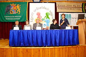 A szakmai előadásokat követően a két megye betegeinek közös ebédje következett, ami után a civil szervezetek bemutatkozására került sor, szórakoztató program mellett. Kovács Áron TV2-es műsorvezető, vezette le a diabétesz csoportok és egyesületek bemutatkozását és a jó humoráról ismert Áron komolyan szólt erről a betegségről, mert maga is cukorbeteg.
