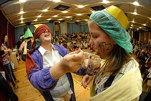 Általánosságban mindenkinek le kellett tenni az esküt, ami deklarálta, hogy a menza és a büfé szent hely a felsőbb éveseknek. Sági Szilárd gasztrokibic megirigyelhette azt a gasztronómiai találékonyságot, mellyel a felsőbb évesek avató sütiket sütöttek a gólyáknak. Szentes, 2010. 11. 11.