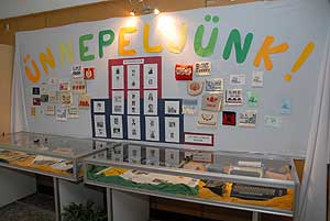 10-30 évvel ezelőtti eszközök, tárgyak sorakoztak a lépcsőfordulóban, az előcsarnokban. A mai diákok rácsodálkoztak a cirillbetűs írógépre, a kezdetleges számítógépre, vetítőkre, az úttörőélet elmaradhatatlan kellékeire, nyakkendőkre, jelvényre, őrsi naplókra. Az iskolanapok a kezdetektől fogva nagy népszerűségnek örvendtek. Erről árulkodnak a vitrinben elhelyezett fotók, a lépcsőfordulók képnézegetői.