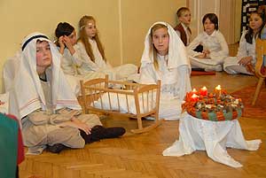 A gyerekek ünnepi előadásában a Béke, a Hit, és a Szeretet három kialudt gyertyáját lobbantotta fel újra negyedik társuk, a Remény. Ameddig ez a láng ég, hallottuk az iskolások tolmácsolásában, addig minden bajra vigaszt találunk. Szentes, 2010. 12. 27.