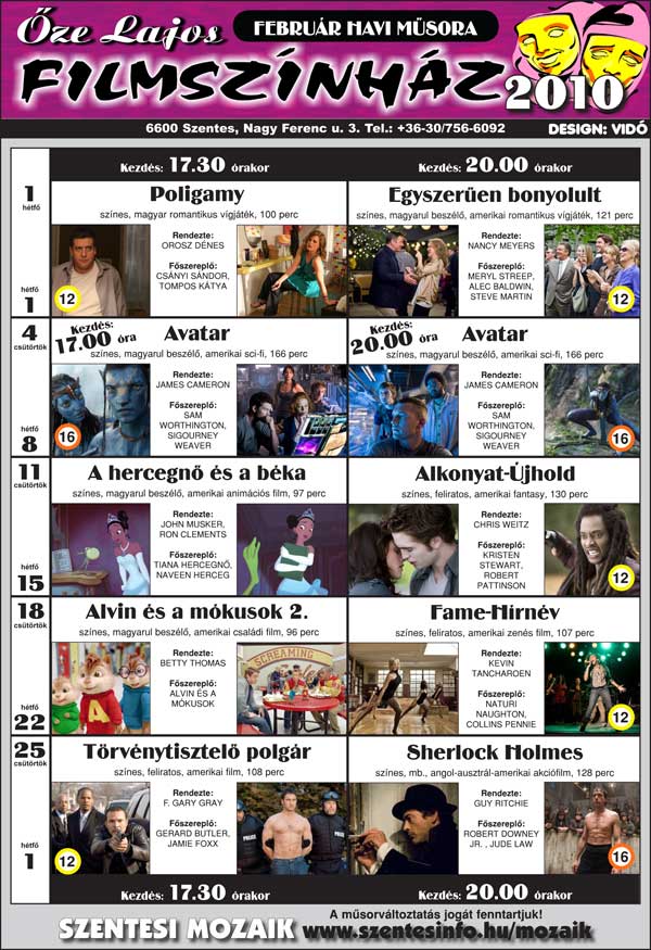 Őze Lajos Filmszínház 6600 Szentes, Nagy Ferenc u. 3. Tel.: 63/312-140