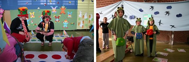 A bohóc twiszterek keze-lába gyakran keveredett ügyeskedő segédeik végtagjaival, a „tóban” pedig békaruhába bújva lehetett kincsekre vadászni…