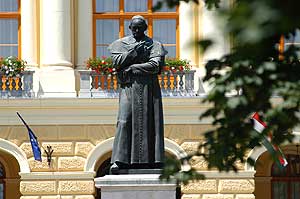 Elérkezvén a Kossuth térre két szobrot fedezhetünk fel: Horváth Mihály és Kossuth Lajosét. A Kossuth teret övező neves épületek is szobroknak adnak otthont. Így a volt megyeháza főbejáratán belépve báró Harruckern János mellszobrát pillantjuk meg, míg a városházán Kossuth és Petőfi mellszobrát. Az Erzsébet téren található az I. világháborús, a Liget bejáratánál pedig a II. világháborús emlékmű. A Széchenyi ligetben a múzeum épülete előtt, a város legértékesebb szobra, a Földmunkás szobor áll, és itt található még a ligetben a névadó Széchenyi István portré szobra is.