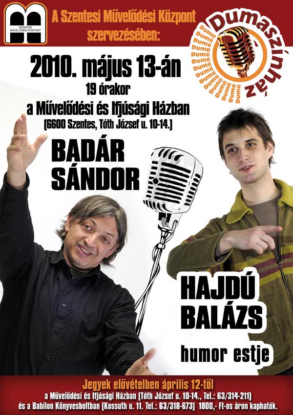 Május 13. Szentesi Dumaszínház: Badár Sándor és Hajdú Balázs