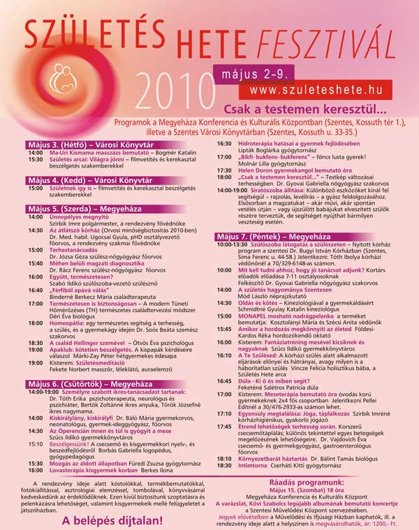 Május 2 - Május 9. A Születés Hete rendezvényei