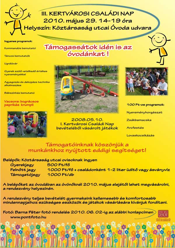 Május 15. Családi Gyermeknap Damjanich János Utcai Óvoda , 9.00 óra