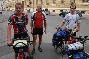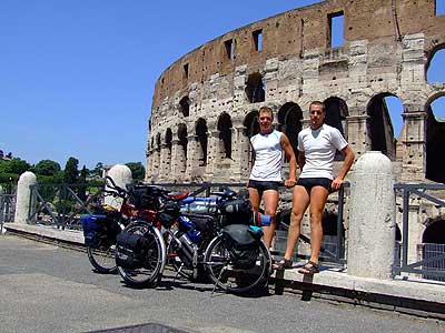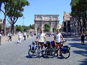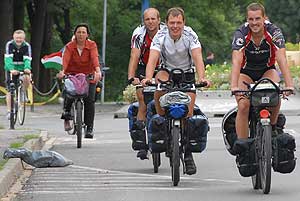 Tél óta edzettek együtt és most indultak el együtt hosszabb útra. Sanyit kérdeztük az útról és annak állomásairól. 5 országon fogunk átkelni, először Horvátországba érkezünk. Dubrovniknál komppal hajózunk át Bariba és az olasz csizma keleti partján tekerünk. Majd Róma irányába átvágunk a félszigeten, és felkeressük látványosságait, szent helyeit. Többek között: a Colosseumot, Szent-Péter Bazilikát, Pantheont, Angyalvárat és a Trevi-kútat. Miután elérjük a pisai ferdetornyot a Dolomitok 2000 méteres hegyeit átszelve Münchenig kerekezünk, ahol várhatólag Csendes Zoli barátunk csatlakozik hozzánk. A Duna mentén folytatjuk utunkat és Bécs, Budapest után már itthon is leszünk. Az út kb: 4200 km lesz, amit várhatólag 35 nap alatt teszünk meg. Utazók: Baranyi Antal Gábor, Vukovich Sándor,