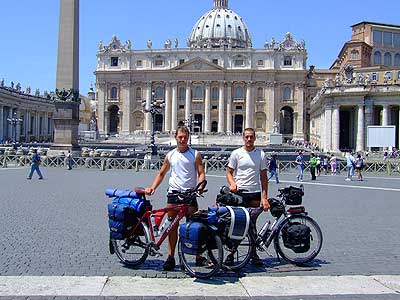 Két szentesi fiatalember vágott neki két keréken (azaz négy keréken) Európának. Tavaly jutott eszünkbe, hogy együtt induljanak el egy kerékpártúrára. Céljuk hogy Rómába eljussanak és egyben Európa több országát átszelve térjenek haza. Baranyi Toncsinak tavaly volt egy angliai túrája, Vukovich Sándornak pedig két évvel ezelőtt egy franciaországi. Toncsi angliai útja emlékezetes marad, mert a szigetkerülő út meghiúsul egészségügyi problémák miatt, így most arra kért minket, hogy addig ne adjunk hírt a vállalkozásukról, amíg oda nem érnek Rómába (babonából!).