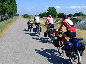 (6/13): Ma 122km mentünk, nagyon jó idő volt (32 fok). Pó folyó mentén táborozunk Mantova előtt 12 km. Holnap remélem elérjük a Garda tavat. Olaszország legnagyobb tava 2000meteres hegyek veszik körbe. Pó folyó körülbelül akkora mint otthon a Duna. n 45.04.754 e010.55.382