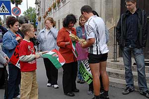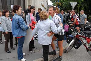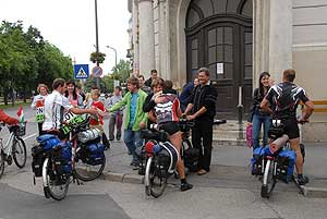 Eddigi pontosságukhoz híven 3895,9 km megtétele után pontosan du. 3 órára érkeztek a Városháza bejáratához. A fiúkat kérdeztük az útról, esetleges problémákról, de ami gond volt, azt még Magyarországon történt velük, és sikerült orvosolni, de figyelmeztette őket, hogy a túra minden pillanatában figyelniük kell.
