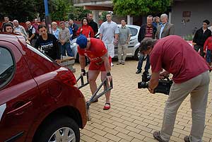 Sinka Zsolt immáron a negyedik rekordjának feszült neki Szentesen a Szent Miklós téren. A tizenöt Guinness Rekord felállításáért küzdő fiatalember most mint egy talicska úgy tolt arrébb egy Peugeot 207-es személyautót sokak szeme láttára. A rendezvényt és erőpróbát Szűcs Lajos alpolgármester nyitotta meg, aki elmondta, hogy eddig is fantasztikus eredmény az amit elért Zsolt, de a nagyobb része még mindig hátra van ennek a rekordsorozatnak. Ezért is fontos, hogy minél inkább szurkoljuk a rekorddöntések során, mert ez egy láthatatlan, de annál nagyobb erőt ad Zsoltnak.