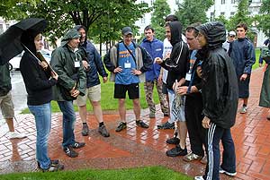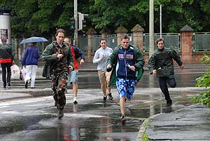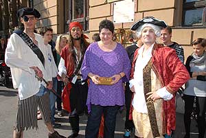 Ezután a Klauzál térre vezetett az út, majd az Aradi Vértanúk terére. Szeged központjában mindenki felfigyel a rohangáló diákokra, akik szemükkel kutattak, olykor cuppogó cipőjükkel trappoltak be a múzeumba.