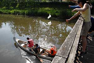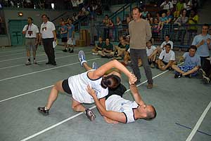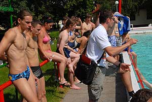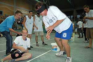 Ennek a napnak talán az egyik legszórakoztatóbb feladata volt ebben a versenyben, mert a hat tagú csapatoknak három tagja evezett, a többiek pedig vízzel töltött nejlon zacskókkal dobálhatták az ellenfeleket. Ha már vizesek lettek a csapatok, akkor jöhetett a következő feladat a strandon, ahol búvár súlyt kellett átvinni a medence alján gyalogolva