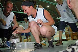 Az igazi bátorságpróba a következő feladat volt, melyben először halakat kellett átpakolnia a csapatoknak egyik vödörből a másikba, majd csótányokat. Ez nem is volt olyan nagyon rémisztő, csakhogy a jelentkezők szemét bekötötték így nem tudták, hogy a vödrök mit is rejtenek. A csótányok pedig nem egy vérmes állatok, csakhogy a csapatok hölgy tagjainak kellett bizonyítaniuk bátorságukat.