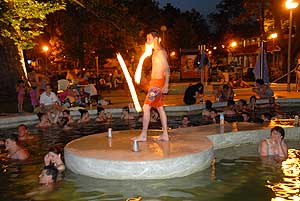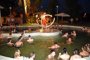 Az elmúlt esztendőben is nagy sikere volt a Szentesi Üdülőközpont éjszakai fürdőzés programjának. Az idén ez folytatódik, valamint az éjszakai pancsolást különböző programokkal egészítik ki, például tűz-zsonglőrök, koktélbár, tüzes koktél bemutató szórakoztatja a közönséget.