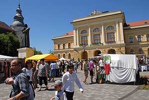 A Kossuth téren június első vasárnapján hagyományosan kirakodóvásár várja a közönséget, párosulva a városi gyereknappal. A művelődési központ népszerű rendezvénye három évtizedes múltra tekint vissza, amit mindig nagyon vár kereskedő és vevő, felnőtt és gyerek egyaránt. Múlt vasárnap az időjárás is kegyeibe fogadta a kavalkád résztvevőit. Az ország minden részéből érkezett árusok sátraiban a portékák széles arzenálját találhatta a nézelődő. Bár a modern termékek is mindinkább helyet követelnek a kínálatban, a népi jelzőnek azért még mindig van létjogosultsága a rendezvény megnevezése előtt. A térre kilátogató sokadalom láthatott kelméket, prémeket a nyár eleji forróságban, de egy ruhás sátornál marhabőr öveket is árultak, székely rovásírással díszítve, odébb kékfestő köténykék kellették magukat. Dédnagyapáink korát idéző bódé is szórakoztatta az érdeklődőket: Paprika Jancsi Csúzlidájában folyamatos kerékpártekeréssel mozgatott bábukat kellett parittyával eltalálniuk a sorban álló gyerekeknek.