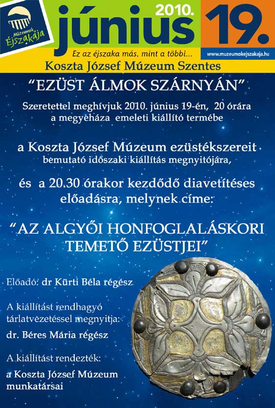 Június 19. "Ezüst álmok szárnyán" - régészeti kiállítás megnyitója Koszta József Múzeum (Kossuth tér 1.)