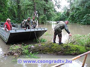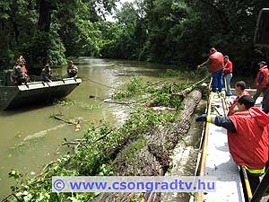 A magas Tiszai vízállásnak köszönhetően a fa gyökérzete átázott, és a nagy szél következtében kidőlt. Az 1 méter átmérőjű farönköt a csongrádi tűzoltóság emberei speciális felszerelés hiányában nem tudták eltávolítani, így a honvédség szentesi műszaki alakulatának segítségét kérték. Katasztrófavédelmi gyakorlat keretében a helyszínre két lánctalpas PTSZ jármű érkezett, összesen 12 fő honvéd dolgozott az akadály sikeres eltávolításán.