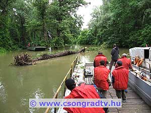 PTSZ-szel húzták ki a fát Egy 30 méteres nyárfa dőlt a Csongrád-Csépa között közlekedő komp útvonalába.