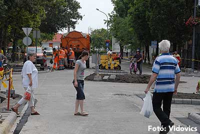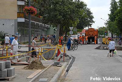 Az építkezés június eleje óta tart, szakaszonként végzik a munkát, éppen azért, hogy elviselhető legyen a városlakók számára az utóbbi évek leglátványosabb beruházása. Szirbik Imre elmondta, hogy a főutcán álló önkormányzati tulajdonú üzletek bérlőit és a magántulajdonban lévő boltok tulajdonosait is kompenzálják a kieső bevétel miatt. Előbbieknek egyhavi bérleti díjat, utóbbiaknak pedig az éves építményadó 50 százalékát engedi el a város.