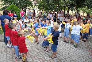 Az ünnepség során játékos táncbemutatót láthattunk az óvodásoktól, melynek következtében szem és rekeszizom nem maradt szárazon. Ezután a résztvevők megtekinthették az óvoda új "szárnyát", majd - na nem úgy ahogy a hajókat szokták felavatni, de - pezsgővel koccintottak az új korszak kezdetére. Szentes, 2010. 07. 30.