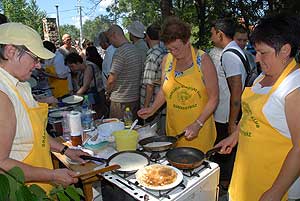 A háziasszonyokkal is előfordul, hogy az első palacsinta nem lesz tökéletes, néha a serpenyő nem elég meleg, máskor a tészta nem állt még össze. Az első óriáspalacsinta sem lett olyan, mint amilyennek Sárai Zsolt megálmodta, a sütéskor túlságosan kiszáradt, s feltekerés közben összetöredezett. A szakács ezért újból nekiállt, újat sütött, és ez a palacsinta nem csak küllemében lett megfelelő, az íze is nagyszerű volt, így sikerült a rekord. A fesztiválon átlagos méretű palacsinták is sültek a művelődési ház előtt felállított húszonkét gáztűzhelyen. A résztvevők közül volt, aki a hagyományos öntöttvas serpenyőre esküdött, mások teflonsütőt használtak, és akadt olyan induló is, aki különleges fedeles alkalmatosságot tartott a láng fölé.