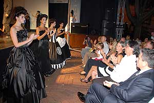 Este 9 órakor a csillagok fénye alatt elkezdődött a show, és csak jöttek és jöttek a ruhaköltemények a nézők pedig hangos tapssal jutalmazták a blokkokban bemutatott ruhákat.
