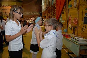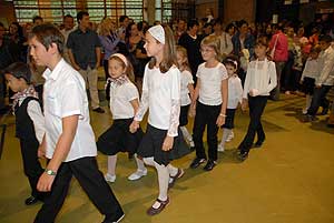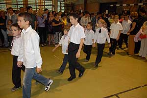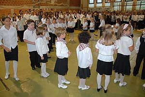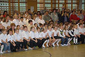 Szemerédi András igazgató 580 diákot köszönthetett aug. 31-én a szentesi Koszta József Általános Iskola tanévnyitó ünnepségén. 59 elsős derűs körtáncával indult el a 2010/11-es tanév első rendezvénye. A kicsiknek szóló kedves gesztusként az ötödikessé avanzsált diákok vezették be újdonsült társaikat az őket ünneplő közönség elé. A kisiskolások nyakában már ott libegett az osztályonként eltérő színű kendő, melyeket szorgos tanító nénik varrtak: E nyakbavalók sokat segítenek viselőiknek az első napokon, hogy egymásra találjanak a tágas iskolaudvarban és a folyosókon.
