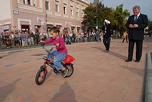 Az Alföld néptáncegyüttes próbálta ki elsőként az új térburkoló által borította útszakaszt, melyet ezután Szirbik Imre polgármester és a kivitelező képviselője Varga Sándor avatott fel. Mosolyra fakasztott mindenkit, amikor az első közlekedő megjelent az új útburkolaton, aki nem volt más, mint egy óvodás, aki kerékpárjával végigszáguldott az ünneplők előtt. Ezután a tömeg átsétált a Kossuth térre, ahol tovább folytatódott a Katonazenekari Fesztivál.