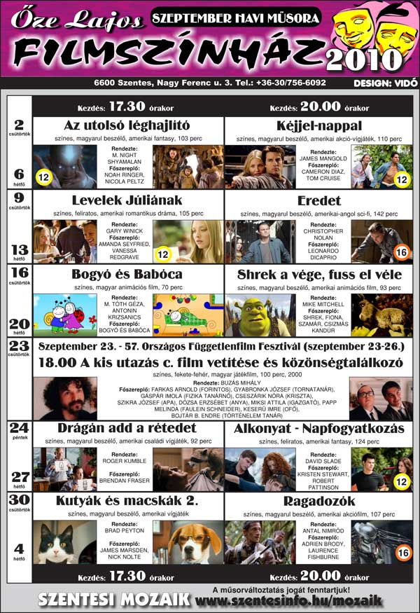 Őze Lajos Filmszínház 6600 Szentes, Nagy Ferenc u. 3. Tel.: 63/312-140