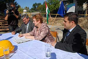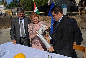 A projektben új épületszárny létesítése, műszer-, és technológia-beszerzés, telepítés, valamint humánerőforrás-fejlesztés, a sürgősségi betegellátás korszerűsítése, kapacitásának növelése, sürgősségi gyermekambulancia, sürgősségi belgyógyászati és sebészeti-traumatológiai ellátóhely és éjjel-nappal használható helikopter leszálló kialakítása szerepel. Erről Szalados László, a KÉSZ Építő Zrt. vezérigazgatója beszélt. Szentes, 2010. 09. 30.
