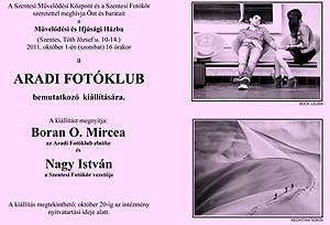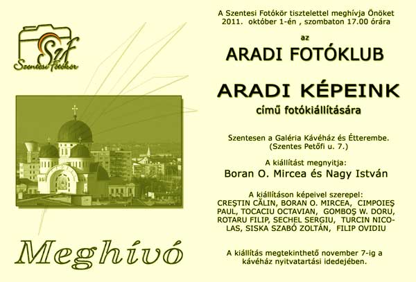 Október 1 - 2. Aradi Fotóklub kiállítása Megnyitó: október 1-jén, 16 órakor