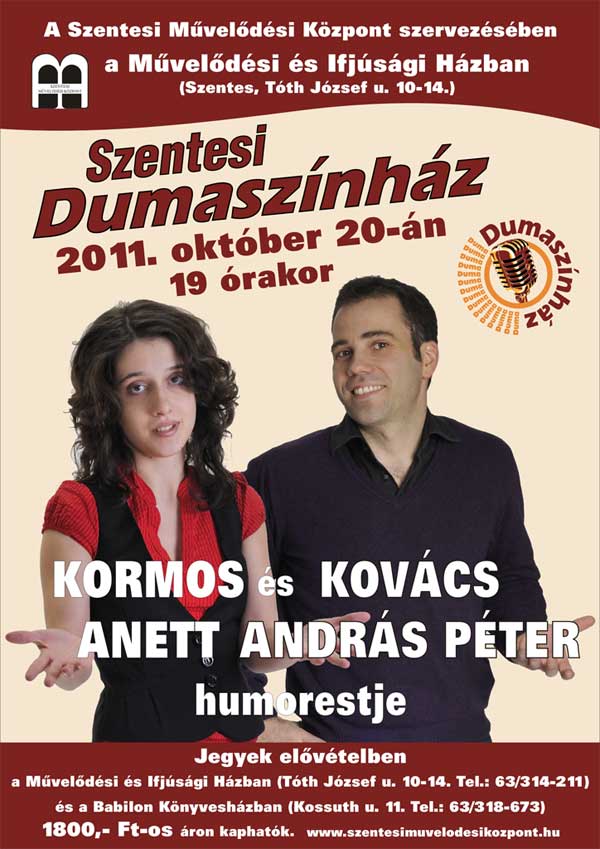 Október 20. Szentesi Dumaszínház Kormos Anett és Kovács András Péter humorestje