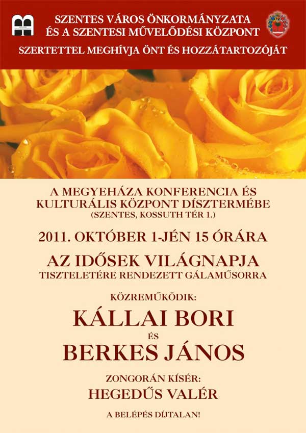 2011.10.21. (péntek) 19 óra BARTÓK BÉLA DÍJAS, ARANYLEMEZES, NEMZETKÖZI SZTÁROK SZENTESEN!