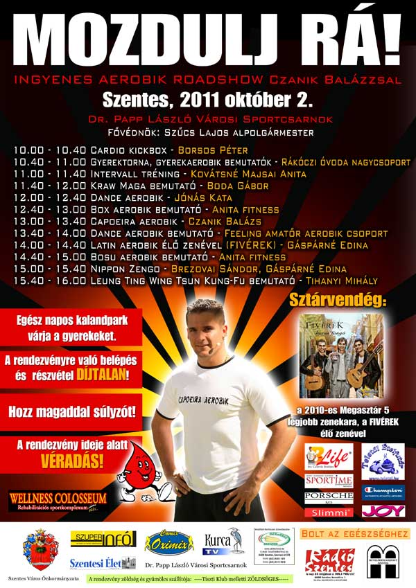 Október 2. Mozdulj Rá! - Ingyenes aerobic roadshow Czanik Balázzsal Sztárvendég: 2010-es „Megasztár 5” legjobb zenekara a Fivérek (Aerobic élő zenére)