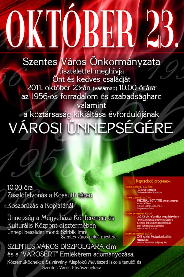 Október 23. Városi ünnepség az 1956-os forradalom és szabadságharc, valamint a köztársaság kikiáltásának tiszteletére
