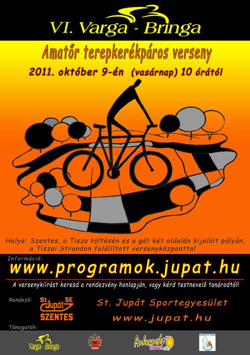 Október 9. VI. Varga-Bringa - Amatőr terepkerékpáros verseny Útvonal: A Tisza töltésén és a gát két oldalán kijelölt pályán Rendezvényközpont: Szentes, Tiszai Strand