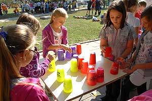 A legérdekesebb sportágak is kivonultak a gyermekek örömére, így nem csak a rögbit, a boxot lehetett kipróbálni, hanem a pohárpakolást is.